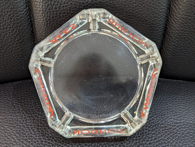 ORIGINAL VINTAGE TRUMAN'S ALES BURTON LONDON GLASS ASHTRAY 5 SIDES 14cm W 3cm H
