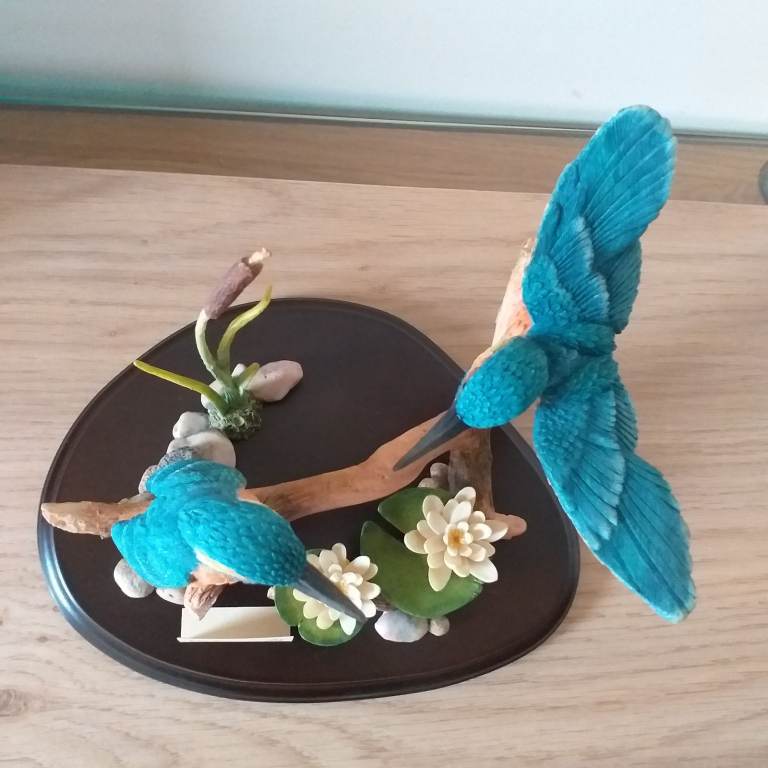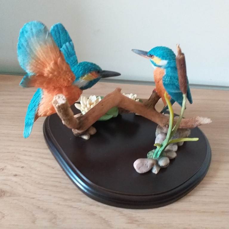 Pair of Kingfisher's with lilies from Country Artists, collectable bird ornament.