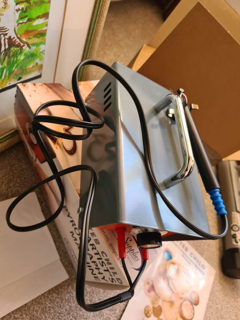 Much sought after pyrography machine. Bought for a project a few years ago. I opened the box, put it together and turned it on to check how it worked. It has literally never been used since. It has been stored in my craft room in a large plastic box ever since.