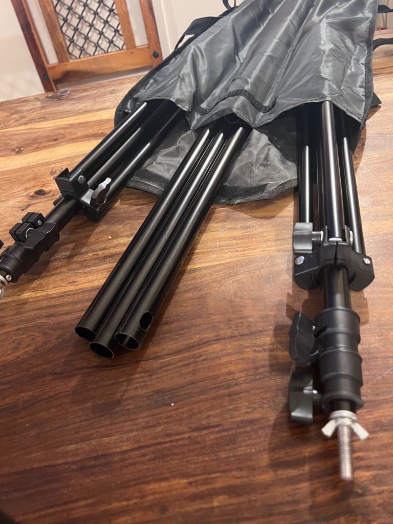 5 backdrops, stand, 2 reflectsble umbrella lamps with stands and bulbs, see pics for more all brand new.