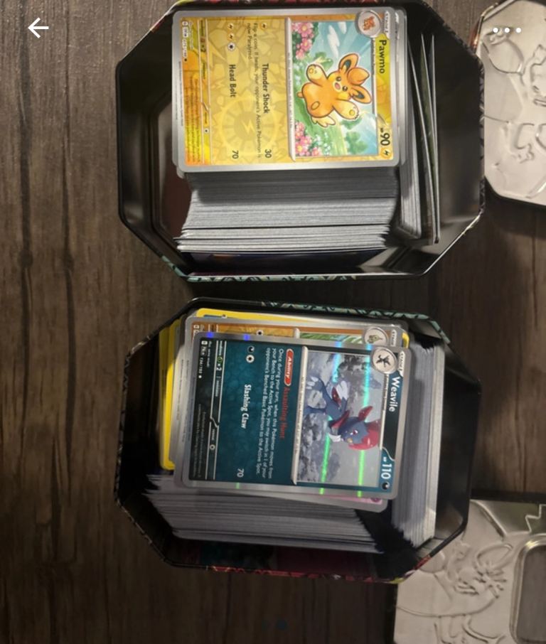 2 mixed tins of Pokémon cards , both tins are filled to the top with cards I don’t know much about them but I would be open to offers