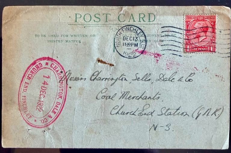 Rare Post card and stamp 1922- 3 Tons of Coal & Coke