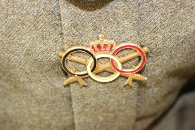 Rare Post WW2 Complete Belgium Army Uniform by Velcotex. Includes cap, jacket & trousers. Comes with 2nd Infantry insignia patches & badges. Dated 1954. Great for Reenactment or Amateur Dramatics/Theatre/TV/Films.