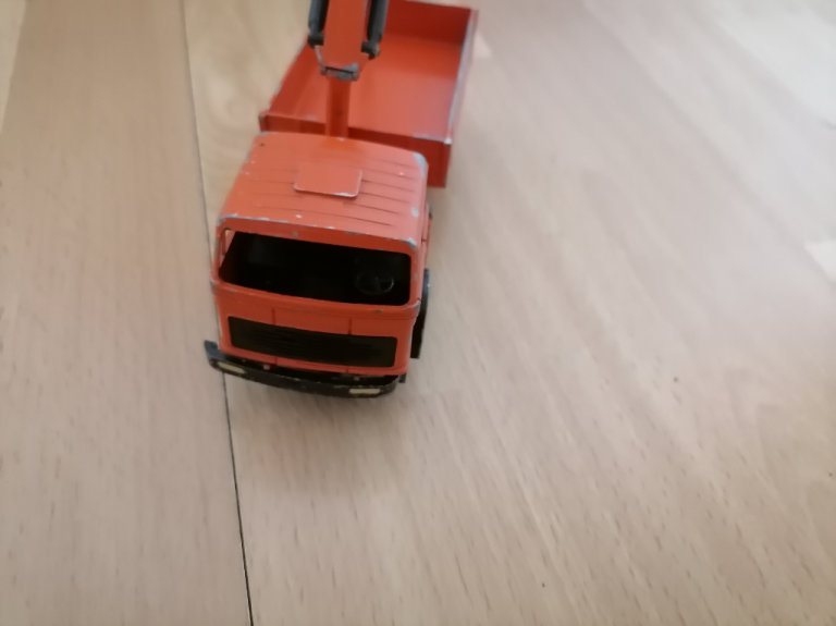 Collectors Item : Rare Vintage West Germany GESCHA Metal Diecast ATLAS Construction Truck Model. Orange Metal Truck with rubber rotating wheels. Removable top body part. Adjustable & swivel construction mechanism. Sold in very good vintage condition just some minor paint flaking. Highly Collectible. Rare Find. No box.