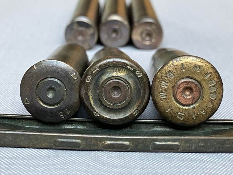 Condition as seen on the photos. The casings should polish out nicely to bright yellow brass.
