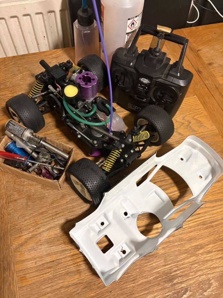 Rc nitro Schumacher rascal nitro truck good condition shell is brand new runs well has a drill starter fitment so can start with drill which is a lot easier than pull start comes with glow start fuel bottle few tools and bits very fast truck it’s not had a lot of use rear tyres have slight wear but not bad £130