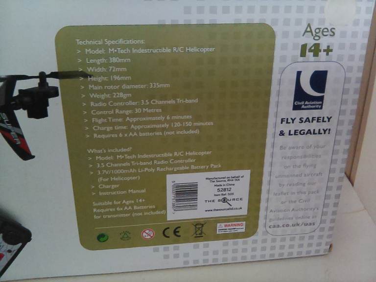 RED 5, Virtually Indestructible RC Helicopter all information on box front and back and sides,