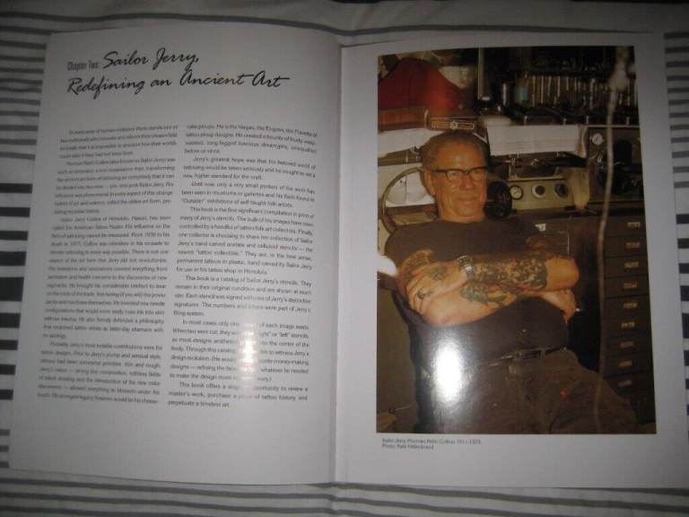 Sailor Jerry,s Tattoo Stencils , gloss softbound cover with gloss pages, as new condition, Legendary Sailor Jerry (Norman Keith Collins) 1911 to 1973, famous old skool artwork from the 40s through to the 70s, They even named a Rum after him Sailor Jerry (my favorite). Can post at cost or collect from Hook in Hants RG27 area
