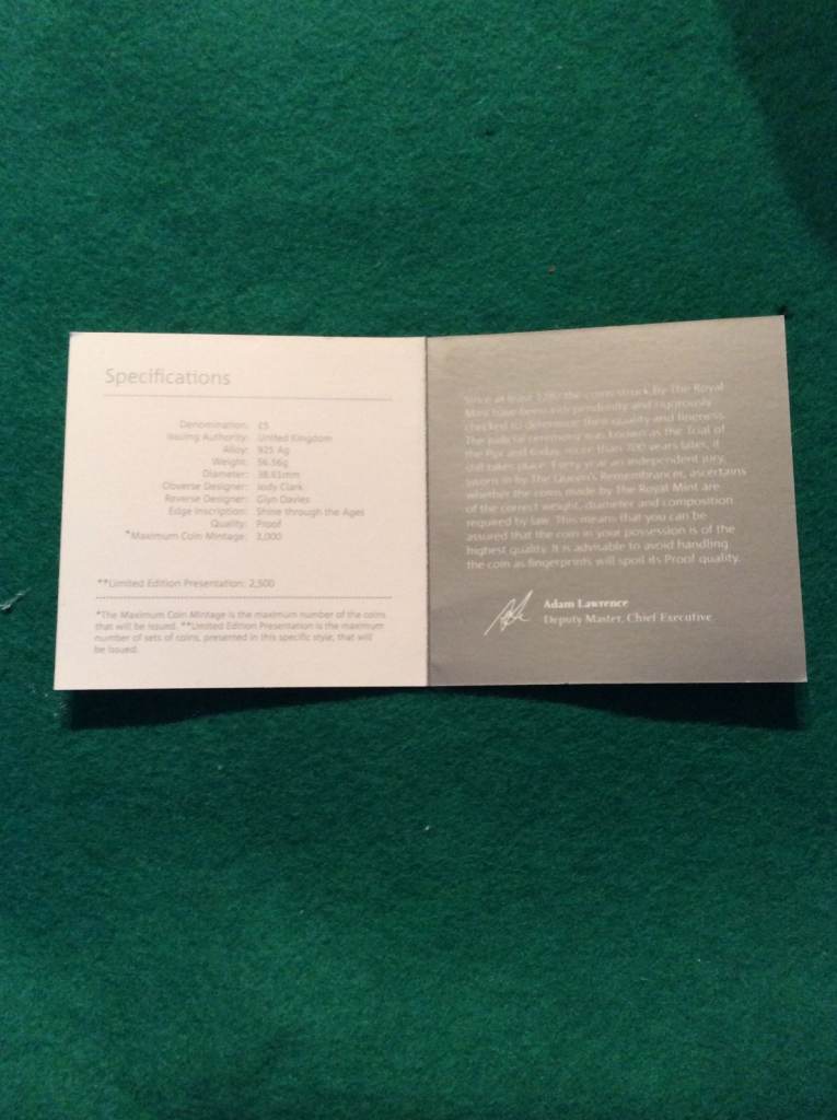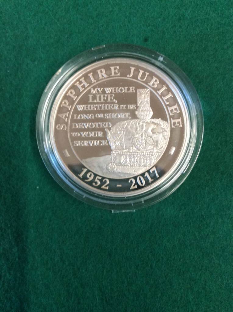This 2017 Sapphire Jubilee of Her Majesty The Queen Piedfort Proof .925 Ag. (silver) Coin weighs in at 56.56 grams. With a diameter of 38.61mm. Mintage 3,000 . Limited Edition Presentation 2,500. 56.56 grams of silver at spot price today equates to about £140. Taking into account the aesthetic value to a collector, my asking price of £175 seems reasonable. And to the investor only time will tell how much silver will increase in value. A 1 ounce (31grams) silver coin from a dealer at this time is over £100, and that is if they have any available. I am not a Dealer. Just an 83 year old trying to supplement my pension.