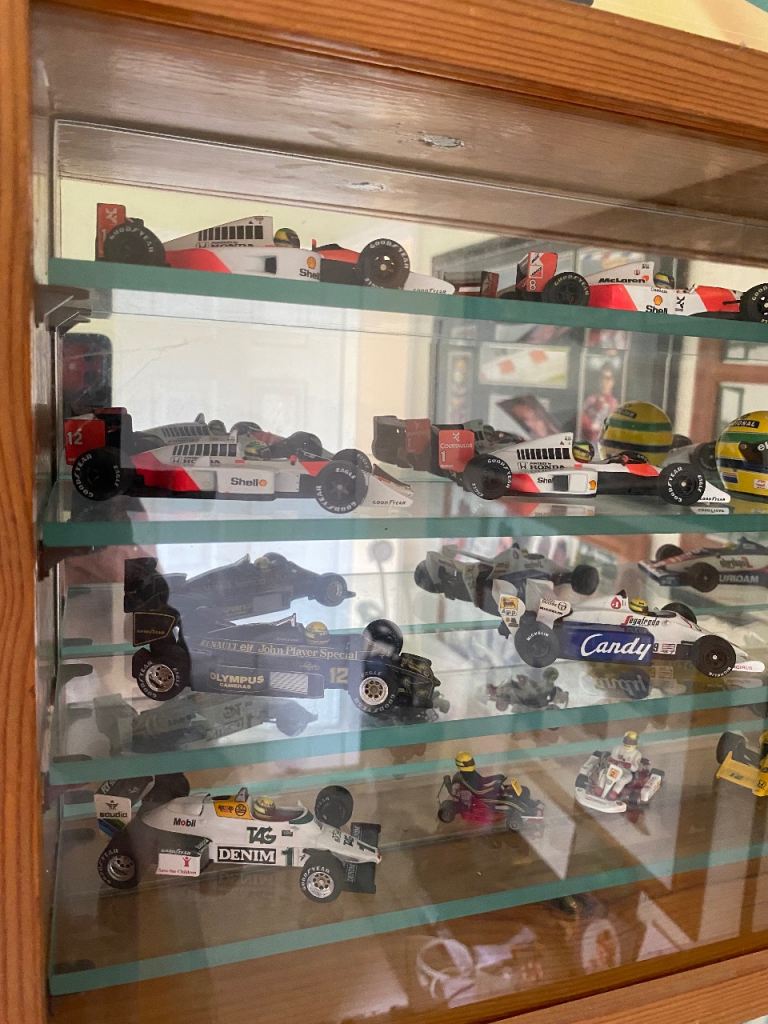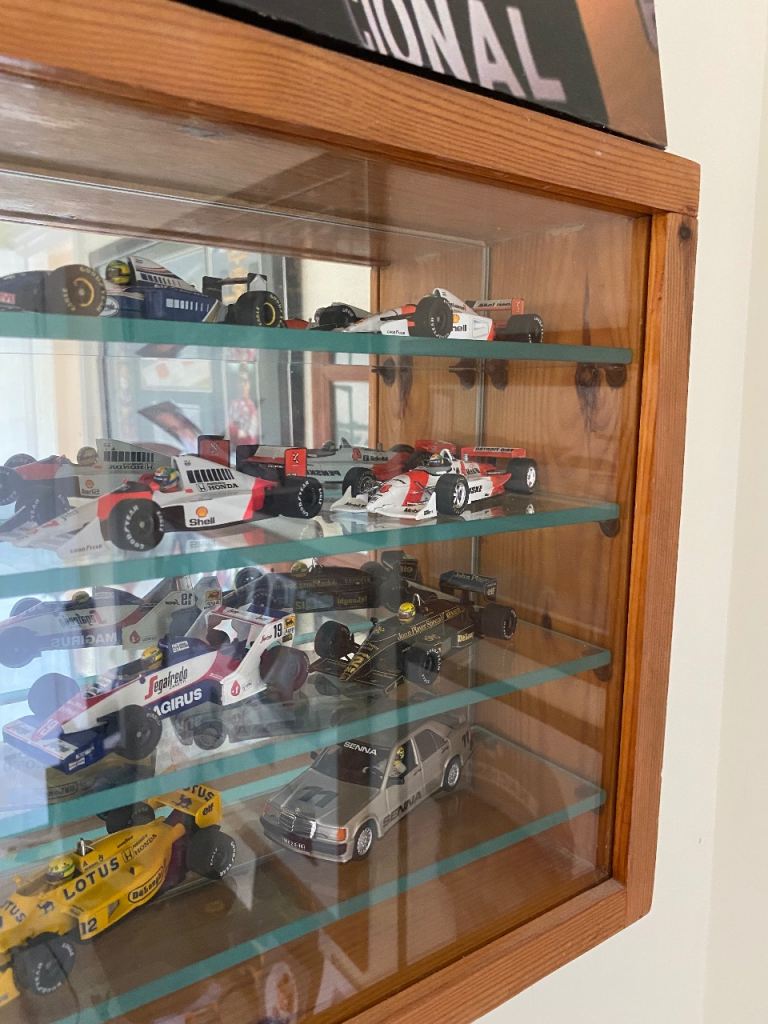 15 models 2 go karts and helmet in hand made display case. Complete with all original boxes.