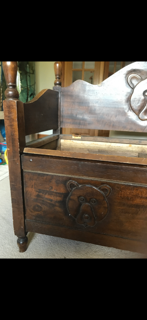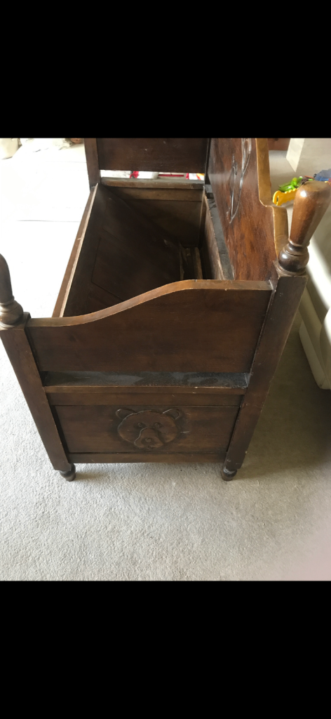 Lovely old storage/ toy chest .Lid of seat needs attention but rest in great condition. Could be done up lovely. Solid oak so is pretty heavy . Could also take lid off altogether .. old quality chest . Collection please from Selby area. . Solid wood I think it’s oak so quality . Wort a lot more if mended . 100cm long x69 cm high x 48 cm wide .
