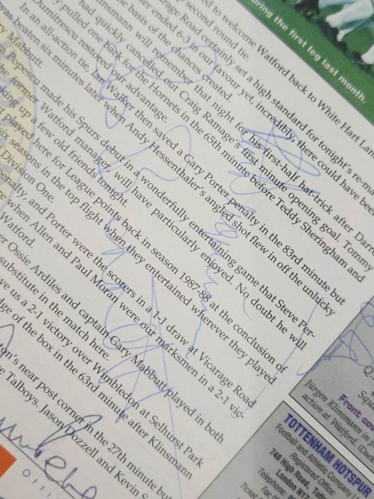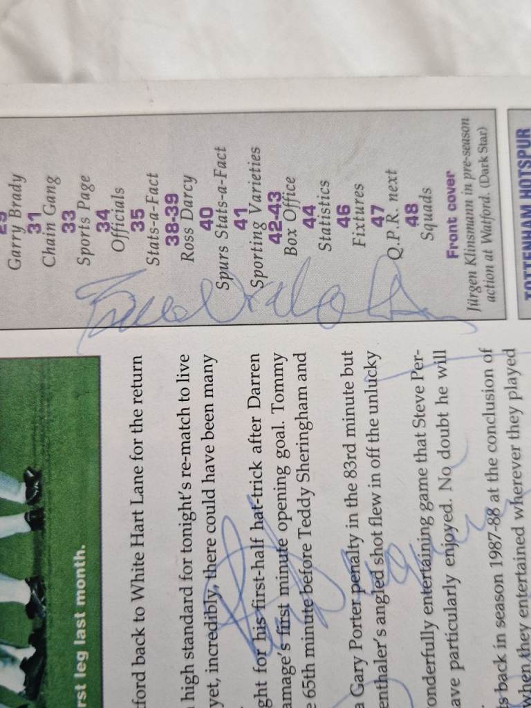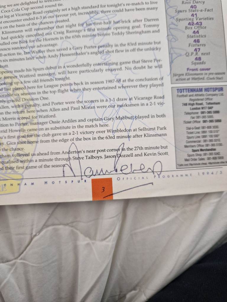 Autographed spurs programme.
