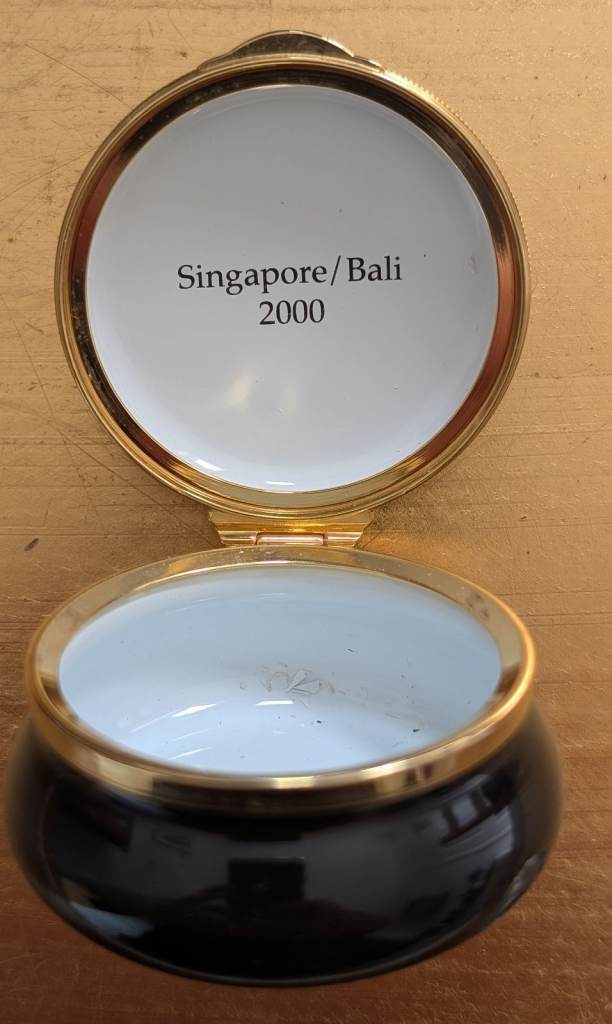 Staffordshire Enamel's Round Pill Box : Singapore/Bali 2000 : Allied Dunbar #57