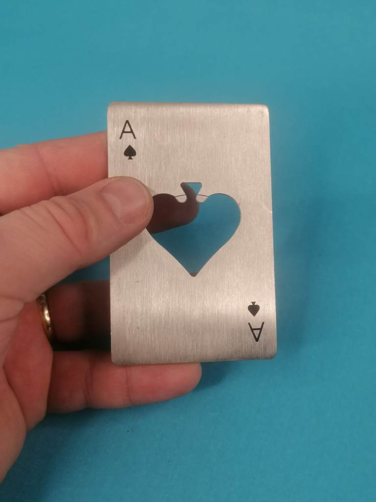 Stainless Steel Credit Card Poker Bottle Opener Men's Gift, silver tone. Good condition.