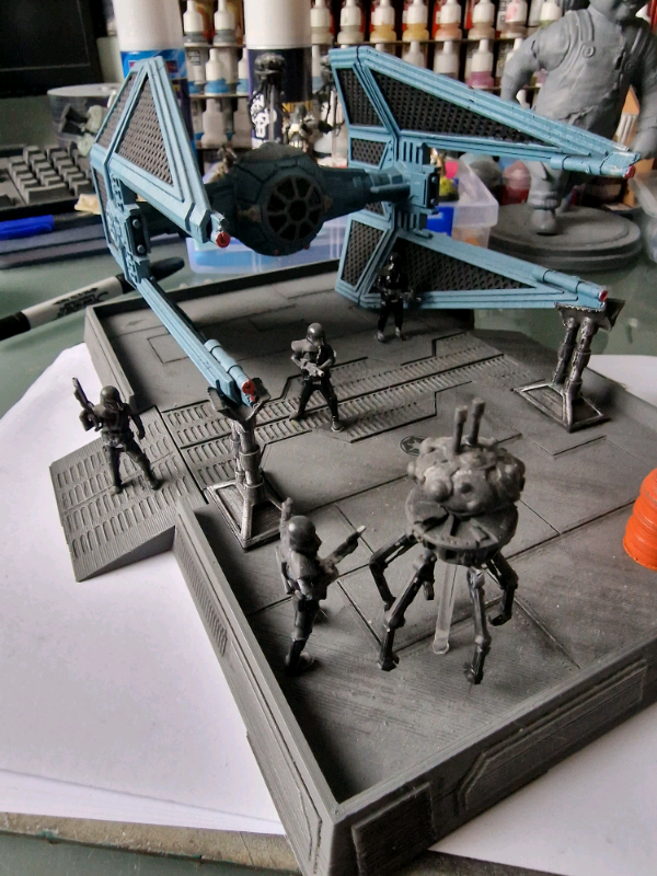 Star Wars Legion 3D printed TIE Intercepter landing field Display with Probe droid & death troopers