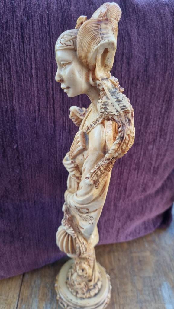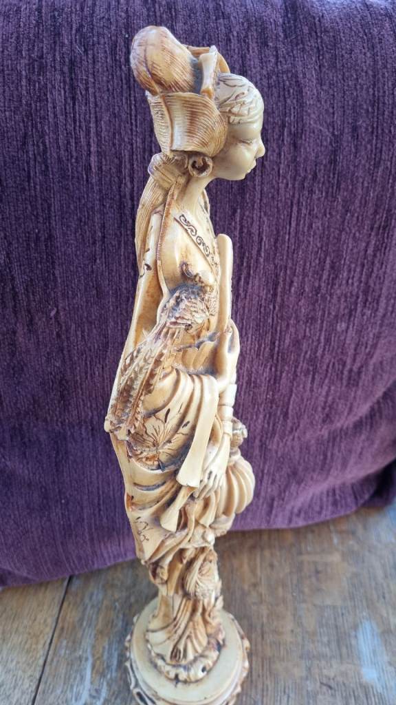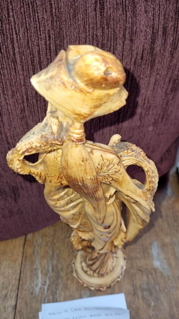 Statue. Lady With Exotic Birds And Fan. 46cm