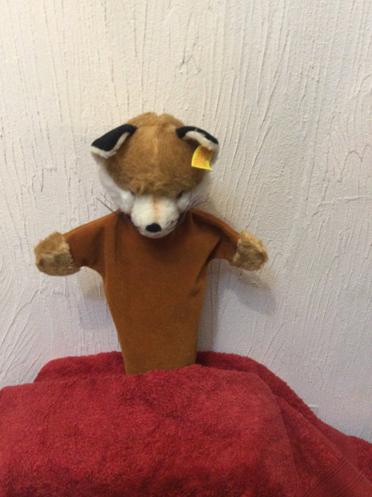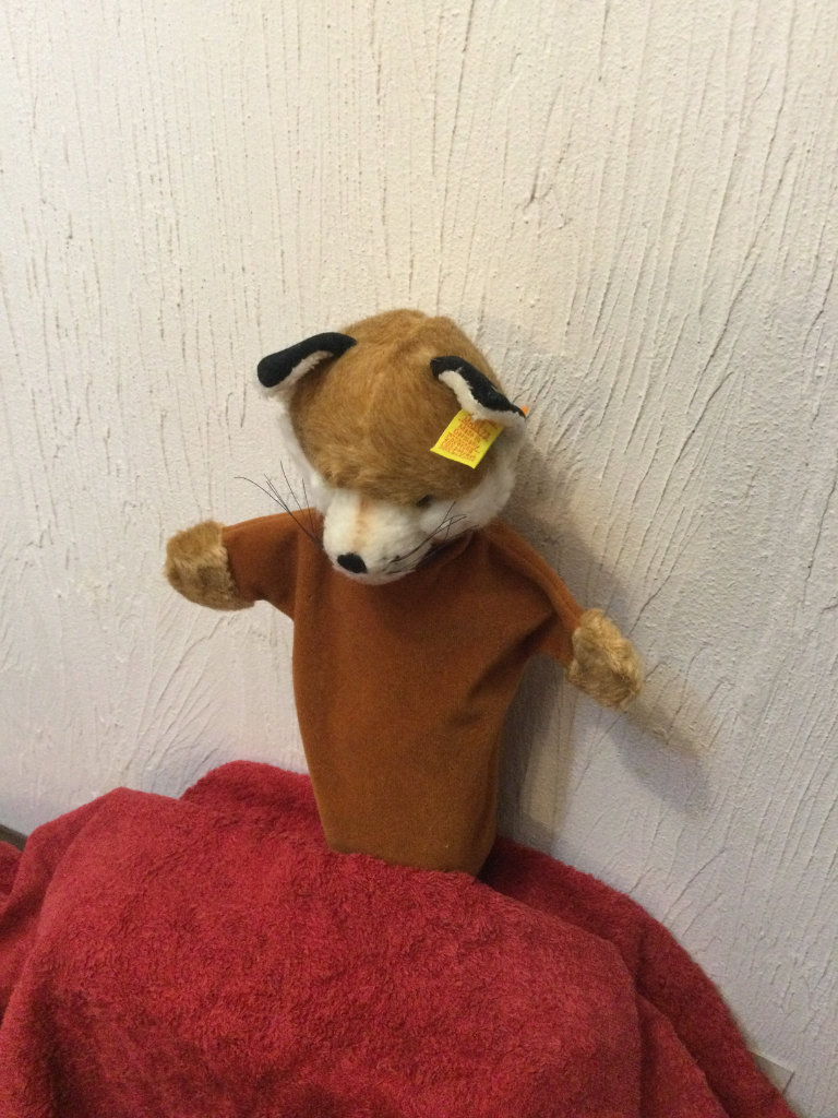 Steiff plush vintage fox hand puppet, in good condition, not play worn.has small tear at back of neck.smart fun toy. Collectible and sought after manufacture. Cash on collection please. Thank you