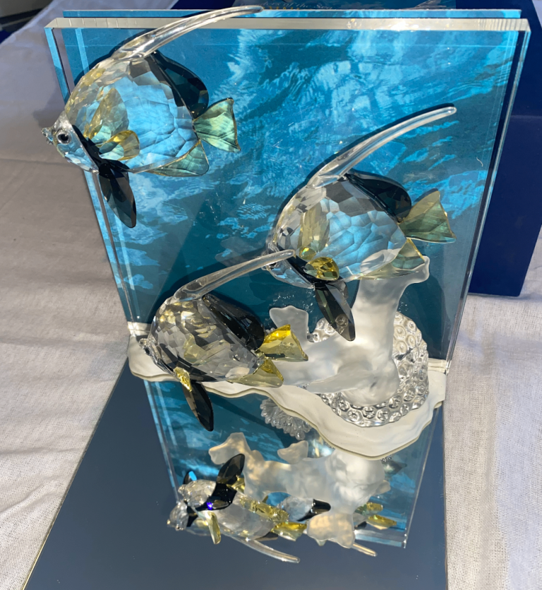 Limited Piece, Community in Colour Crystal was the final piece of the “Wonders of the Sea” trilogy, representing a welcome return to animal trilogies. The entire trilogy was available in either colour crystal or clear and was designed to interlock to form a complete underwater scene. Community was available during 2007 only. by Swarovski Crystal Society