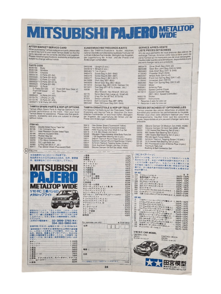 Posting for 15+ yearsTamiya 58132 Vintage RC Radio Control Pajero Metaltop Wide manual