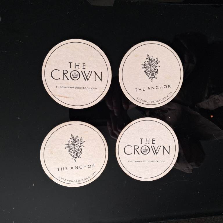 4 coasters from the famous & historic Crown Inn on Oxford Street Woodstock, former haunt of Jammy