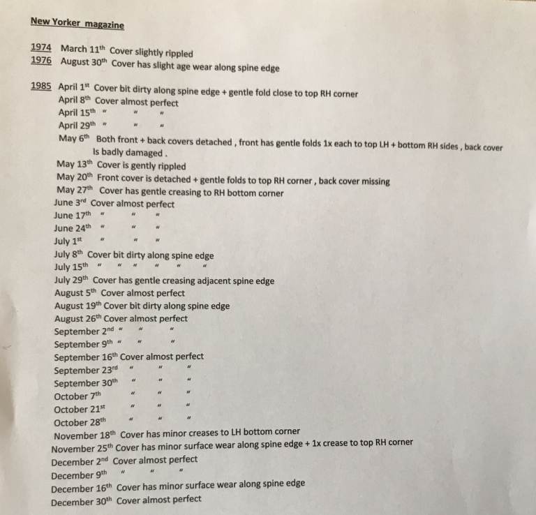 The New Yorker magazine , 119x issues dating from the 70s to 2020