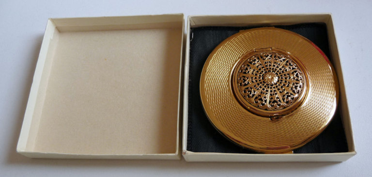 Unused, Boxed, Vintage Kigu Minerva Series Locket Compact by Gustav Kiaschek.