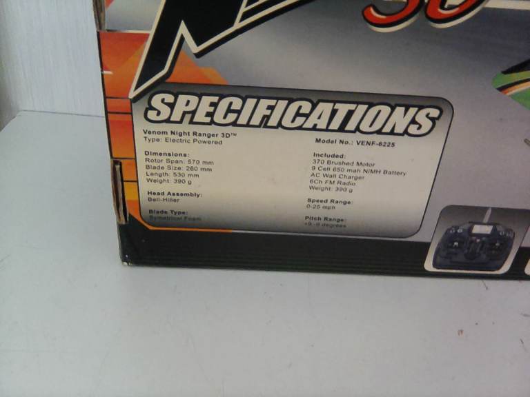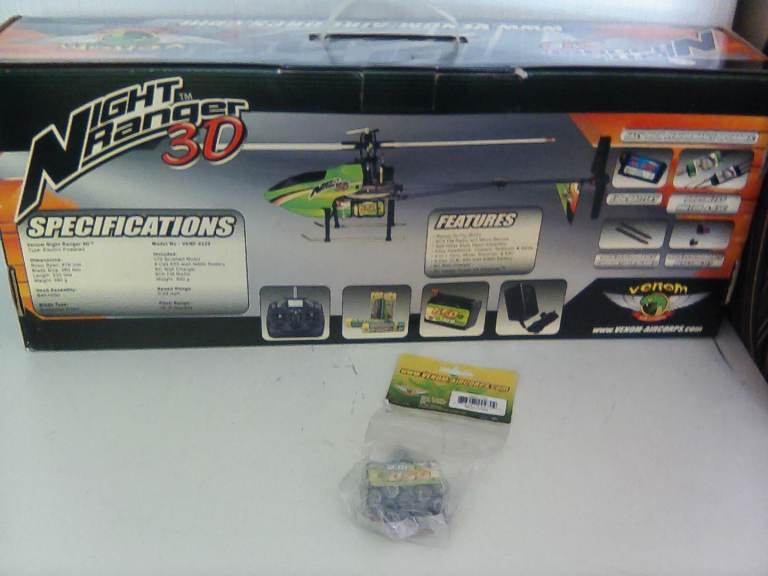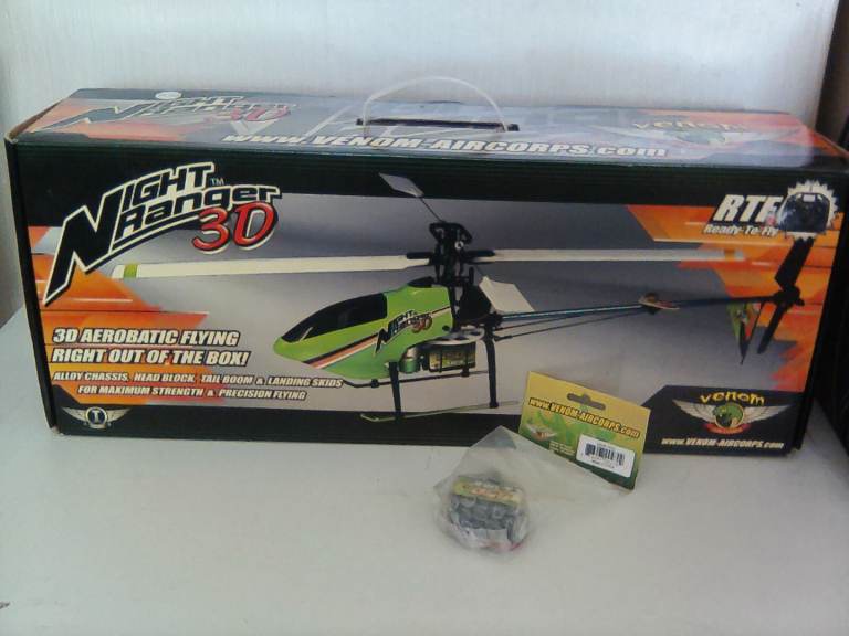 Venom aircorps, Night Ranger 3D R C helicopter with spare battery, All information on the box front and back,