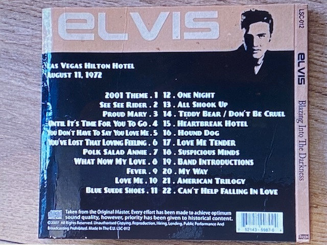 VERY RARE: Elvis CD 'Blazing into the Darkness' **NR AS NEW*