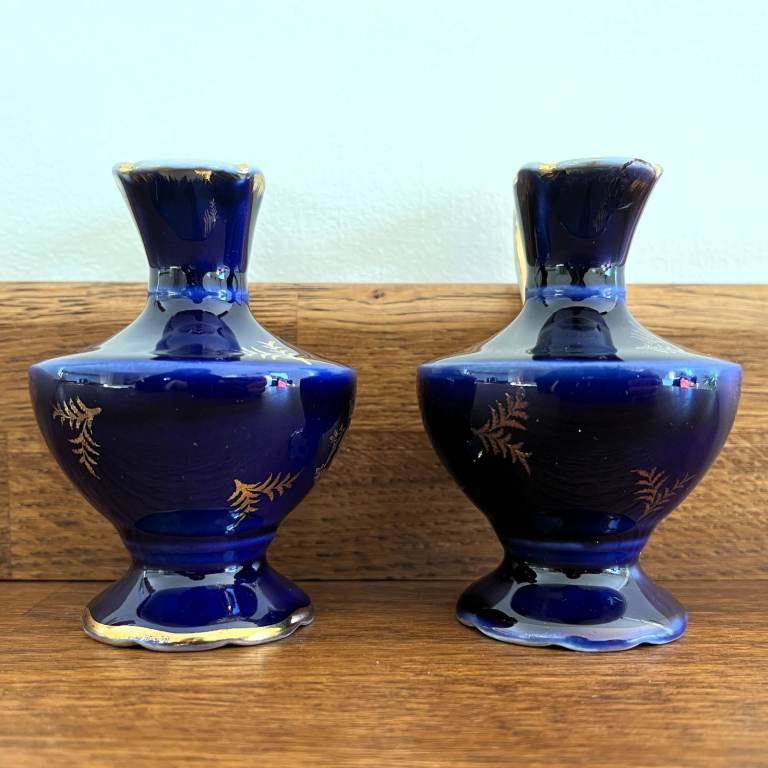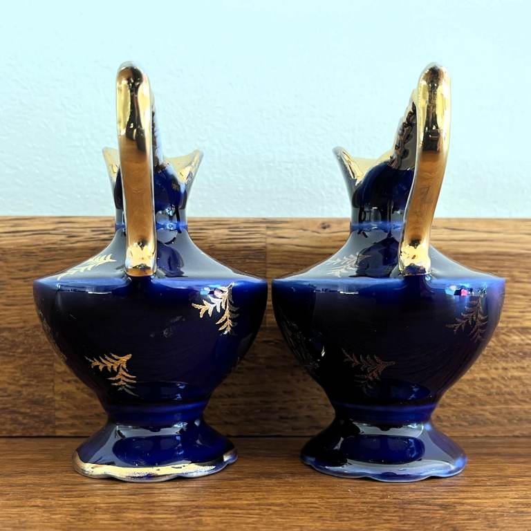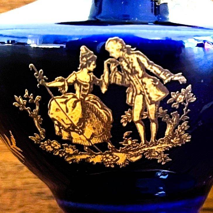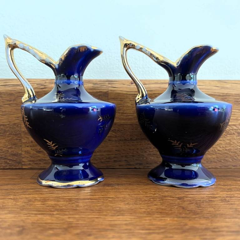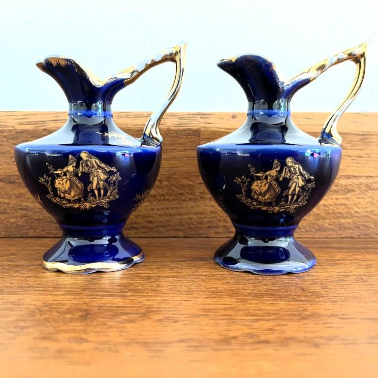 Vintage 1960's 2 Limoges France Meissner jugs. Cobalt blue & gold, courting couple. £10 ovno both