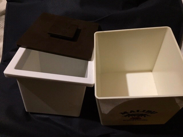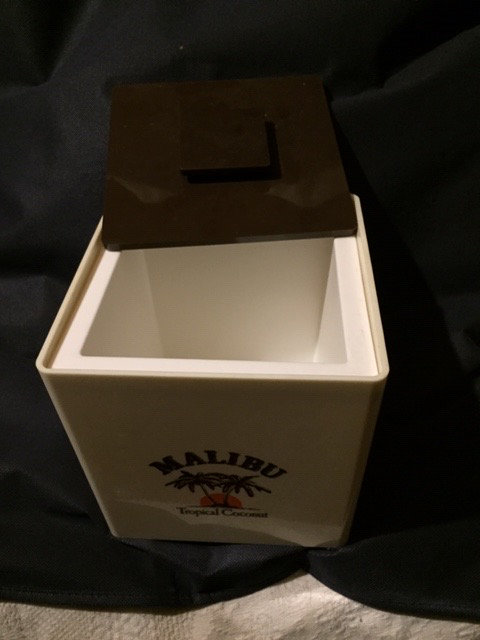 A vintage 1980’s plastic square Malibu ice bucket with removable insert as per photos.