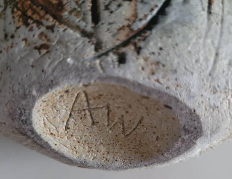 This is a striking rare piece with the Incised AW mark on the base. This is in excellent condition.