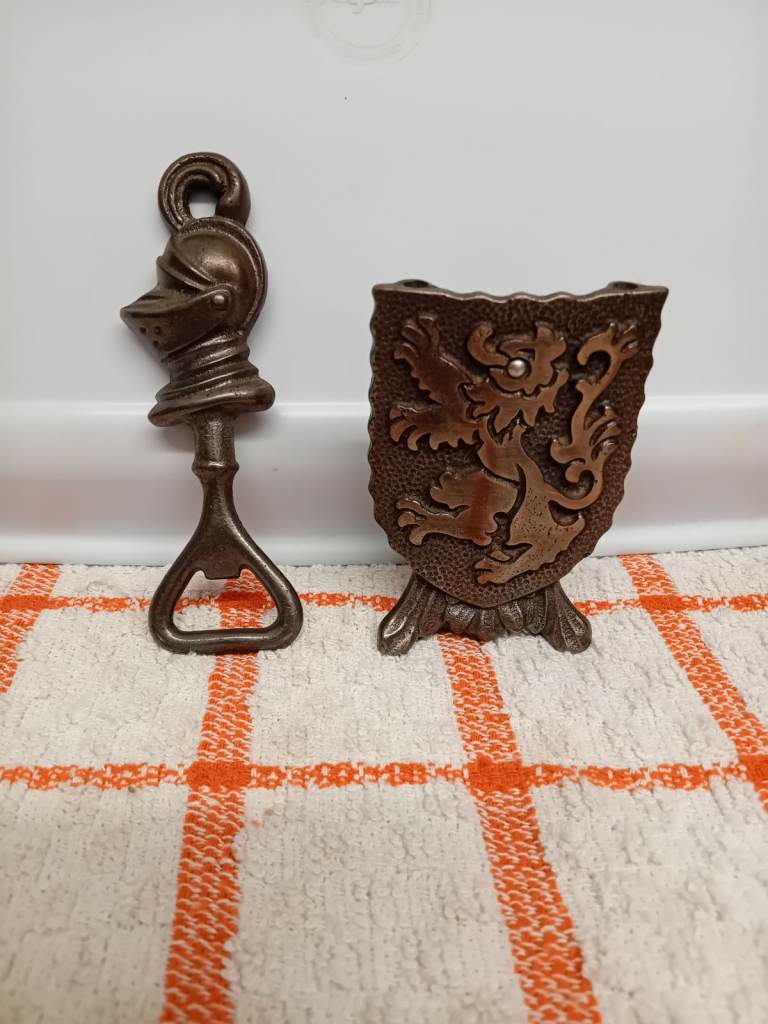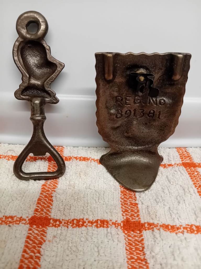 Vintage cast iron Shield and Bottle Opener Stand Reg No.891381, excellent condition.
