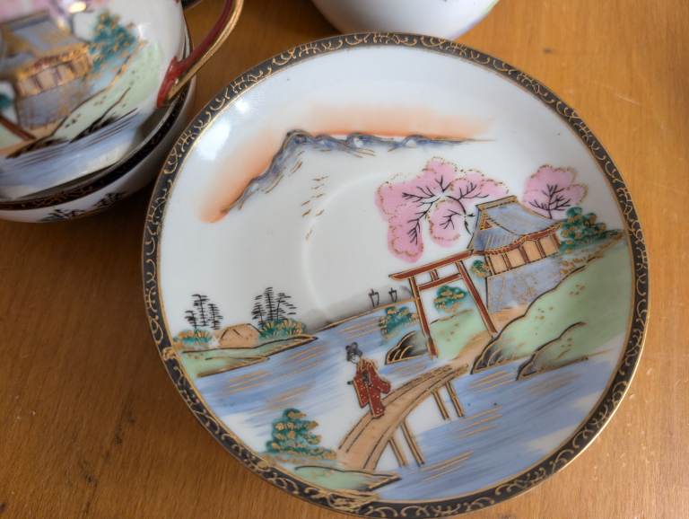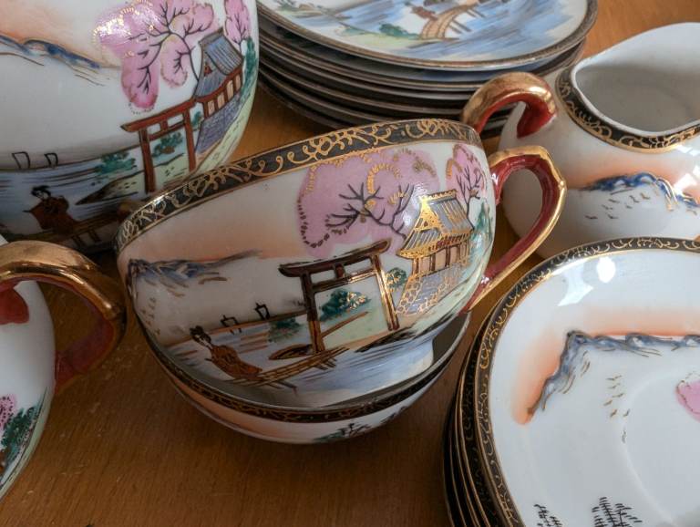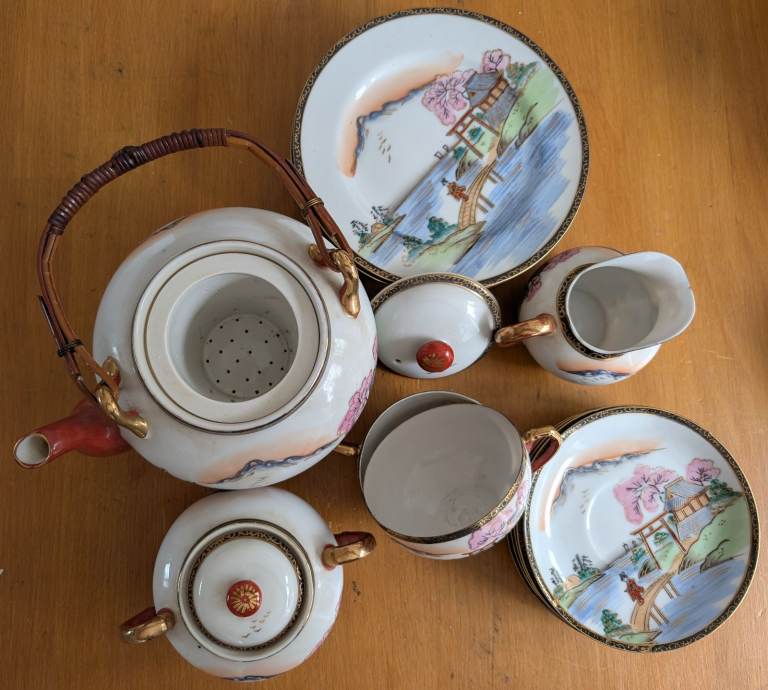 Vintage Chinese Hand Painted Tea Set - Pot/Jugs/Bowl/6xPlates/2 Cups/6xSaucers