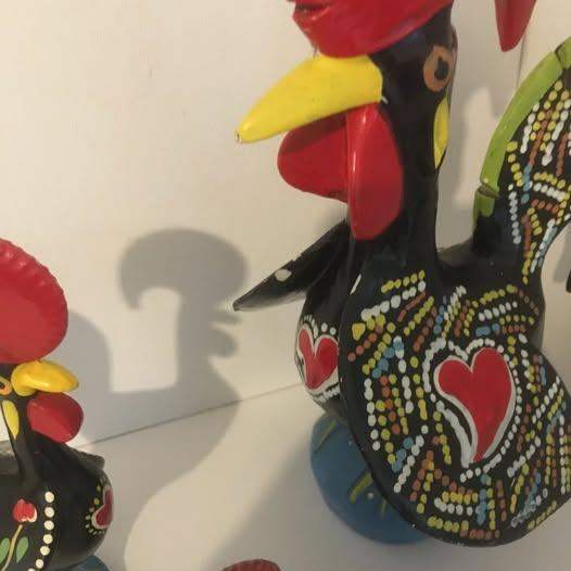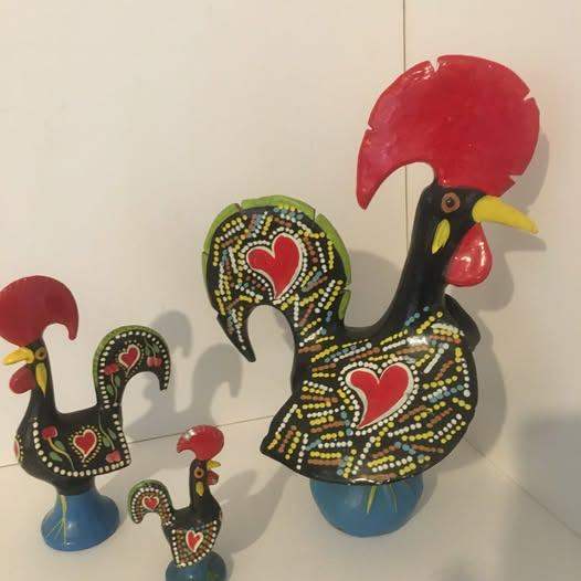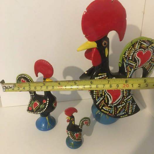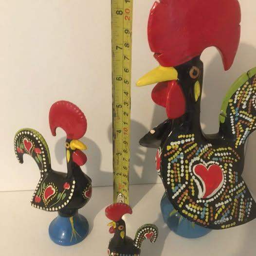 Vintage Folk Art Ceramic Chickens large, medium & small