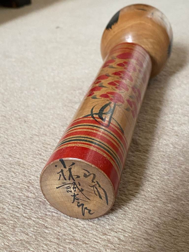 Vintage Japanese Kokeshi Traditional Wooden Handmade Doll with Signed of Seitaro Kobayashi, 24cm tall, #5
