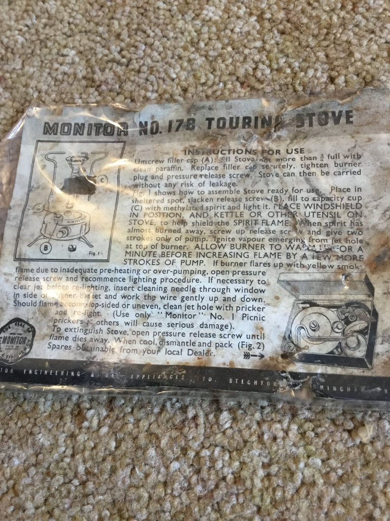 VINTAGE MONITOR TOURING STOVE, ORIGINAL TIN,