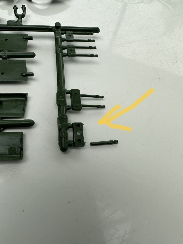 The machine gun has a minor part missing easily made look at pics with yellow arrow