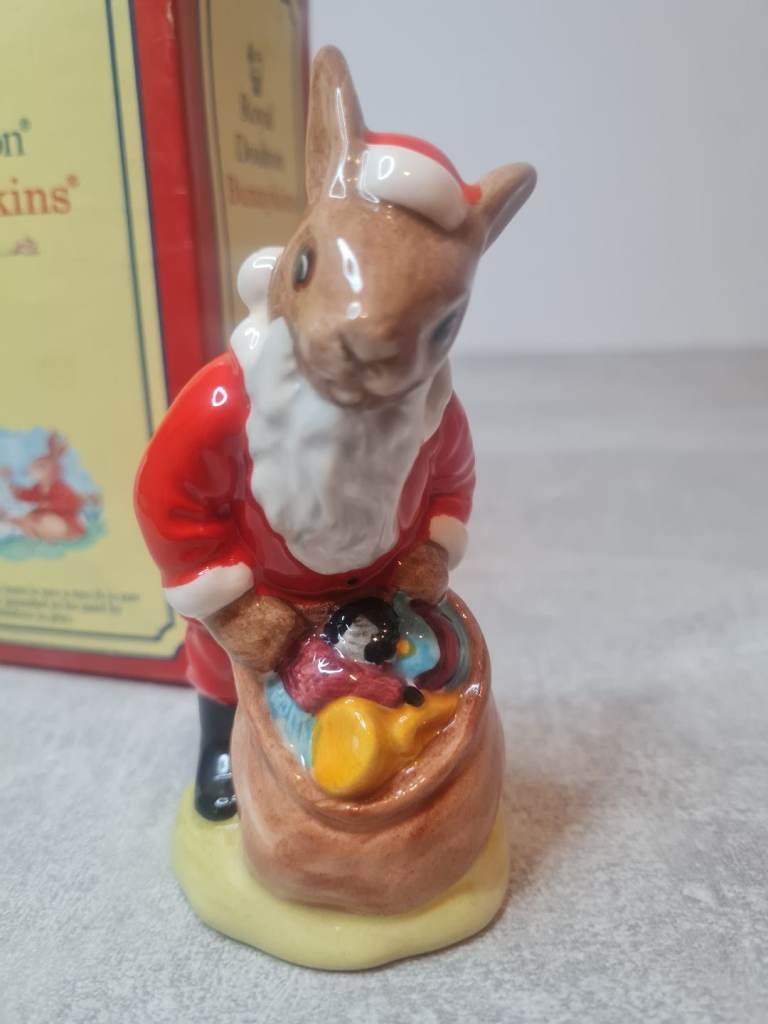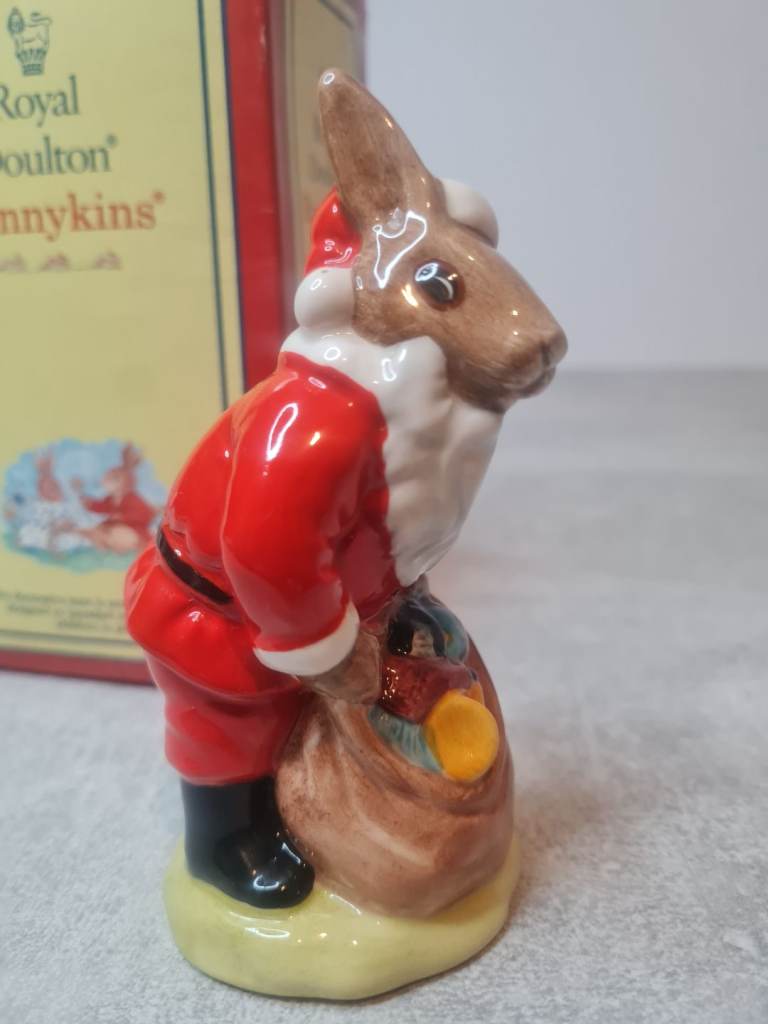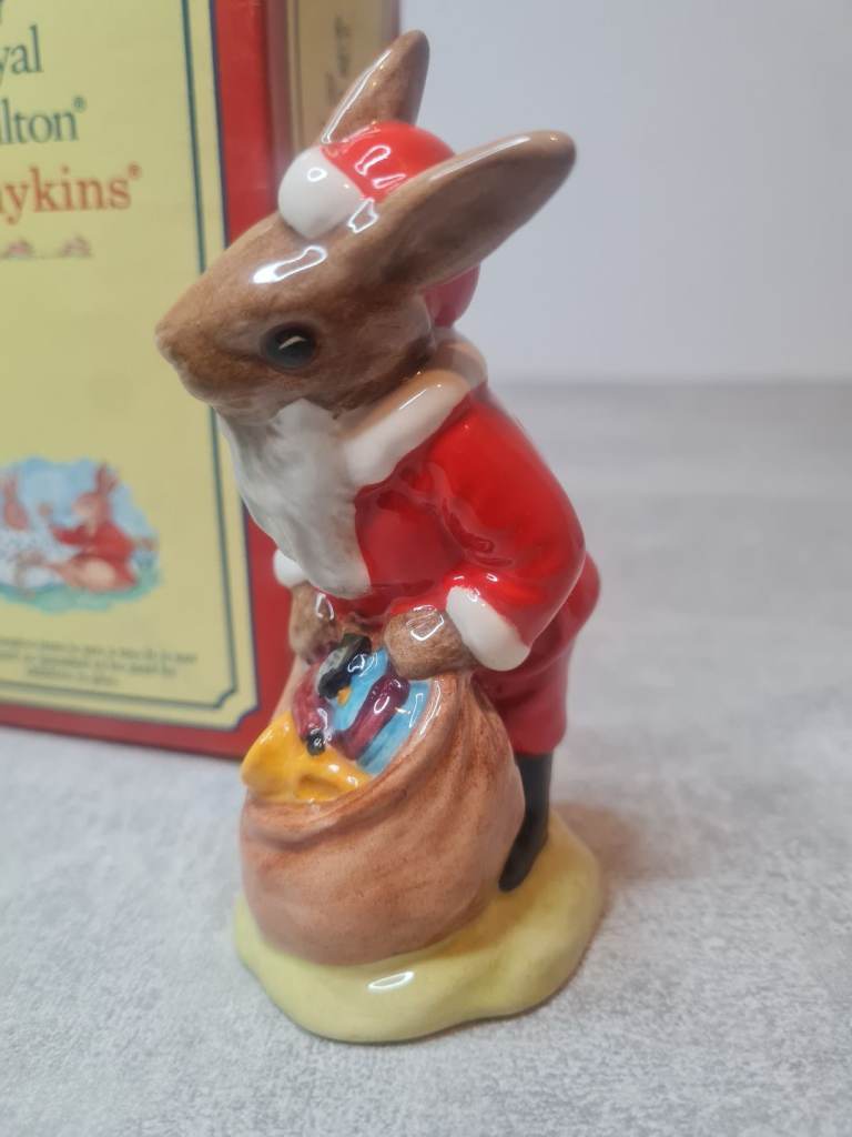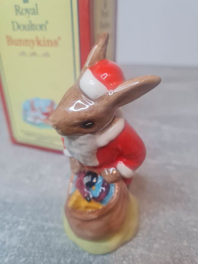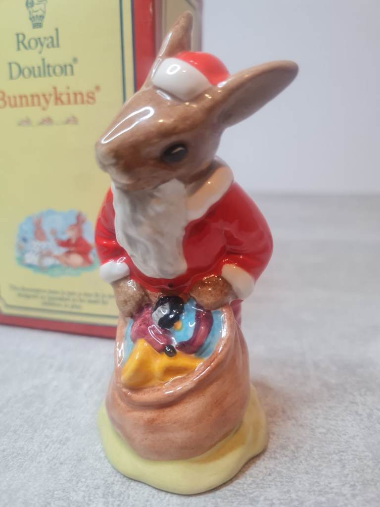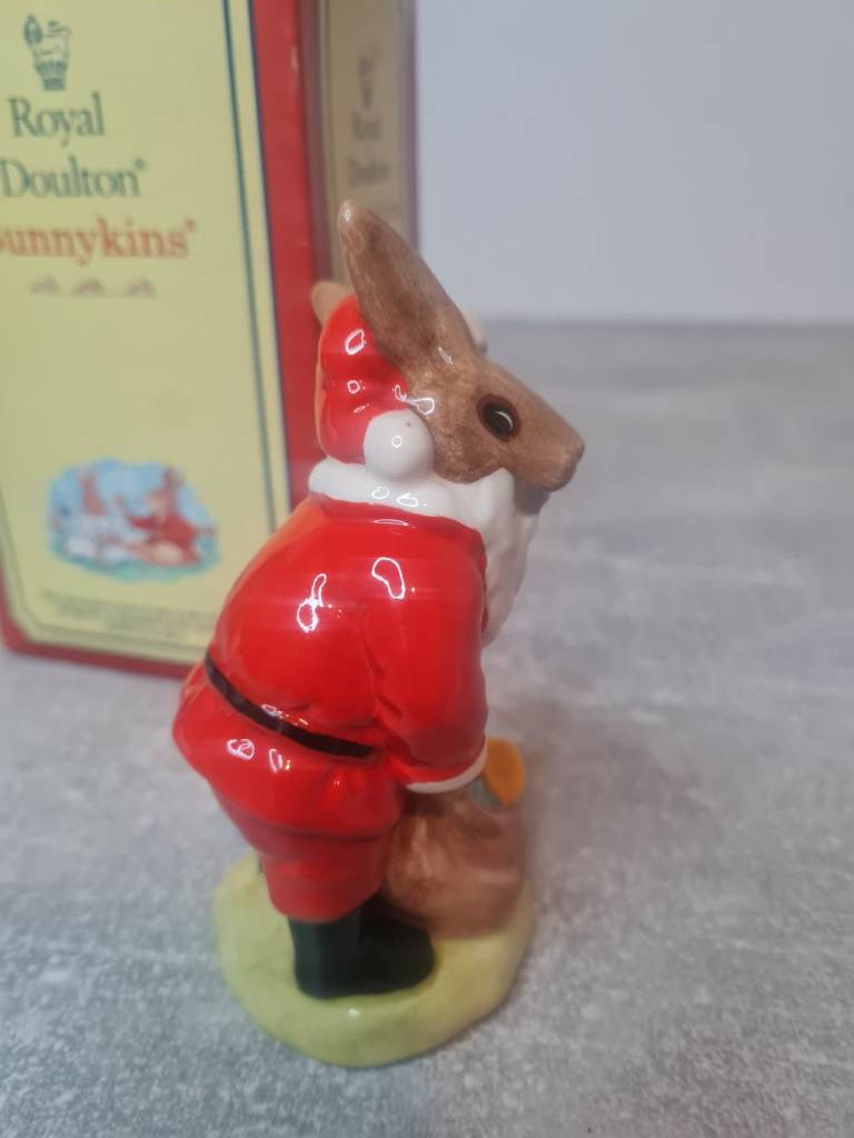 A lovely Royal Doulton Bunnykins figurine from 1981, featuring a bunny dressed as Santa carrying a sack of gifts. Proper nostalgic piece that instantly feels Christmassy.