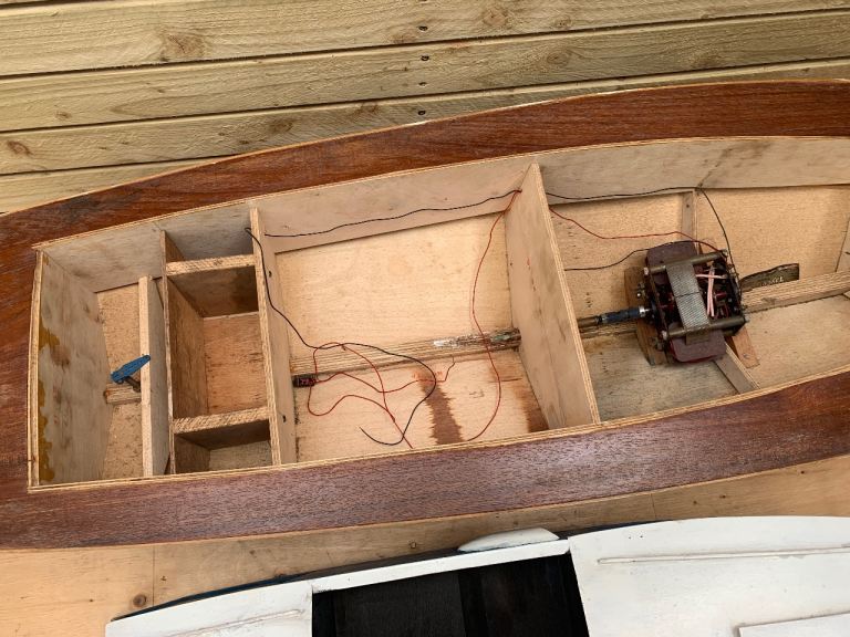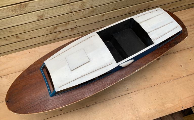 Large Vintage Scratch Built Model Pond Yacht Motor Boat Cruiser on Stand