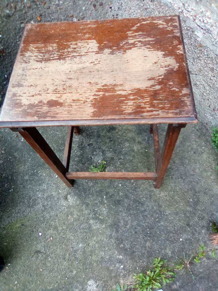 Needs sandpaper and a lick of varnish, solid legs, good condition, can deliver, text message quickly or e-mail may take a few hours