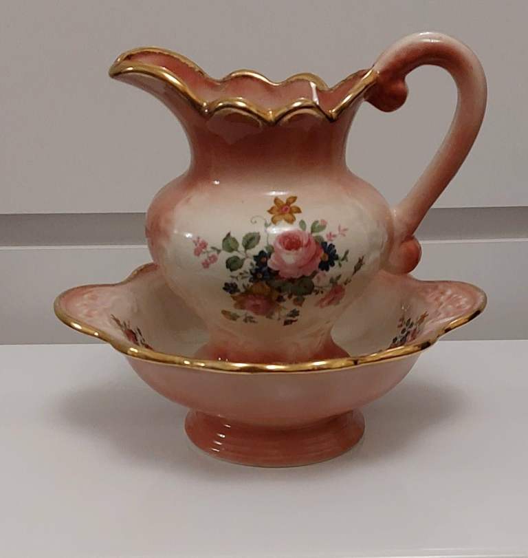 Vintage Staffordshire Ironstone Pink Rose Washing Basin Bowl and Jug