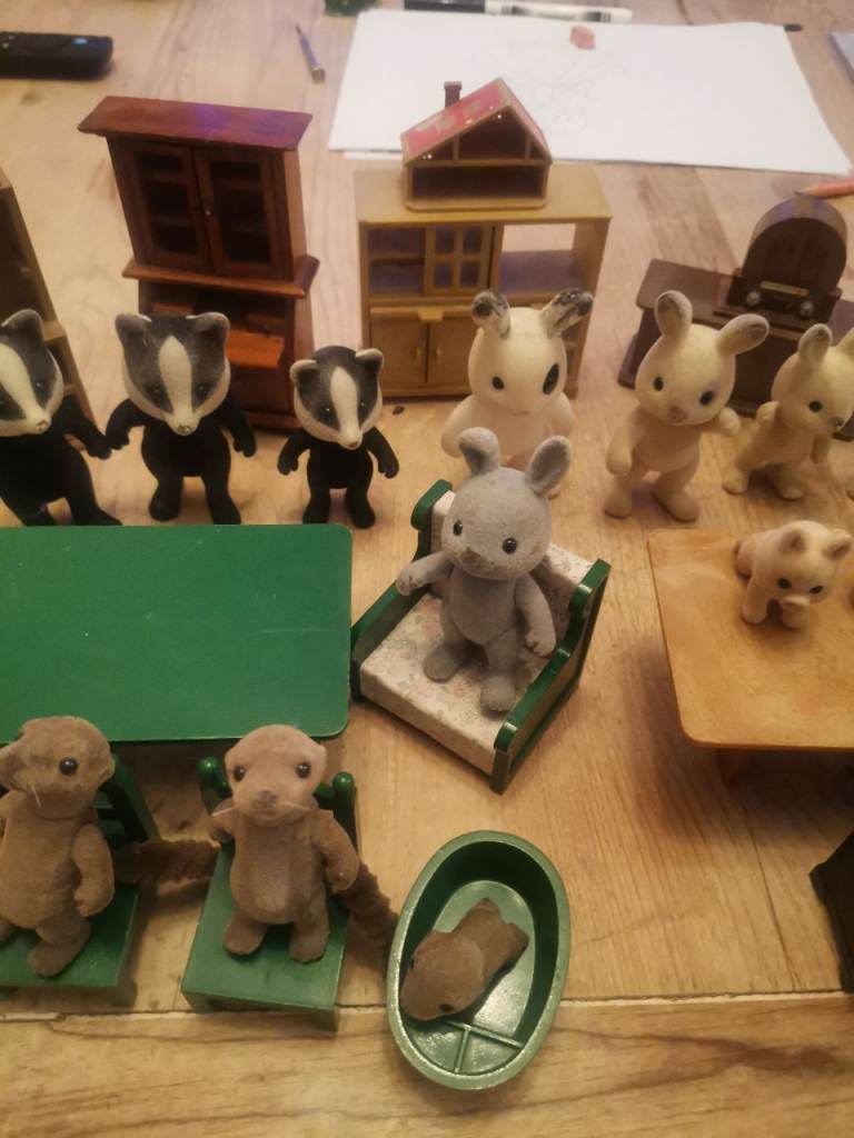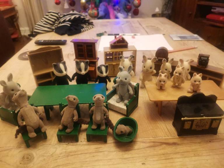 These are old, possbly 80s or 90s. Bits of furniture 3 badgers, 4 otters, 4 white rabbits, 2 grey rabbits and 3 little pigs. Looking for a loving new home. Perfect for a collector.