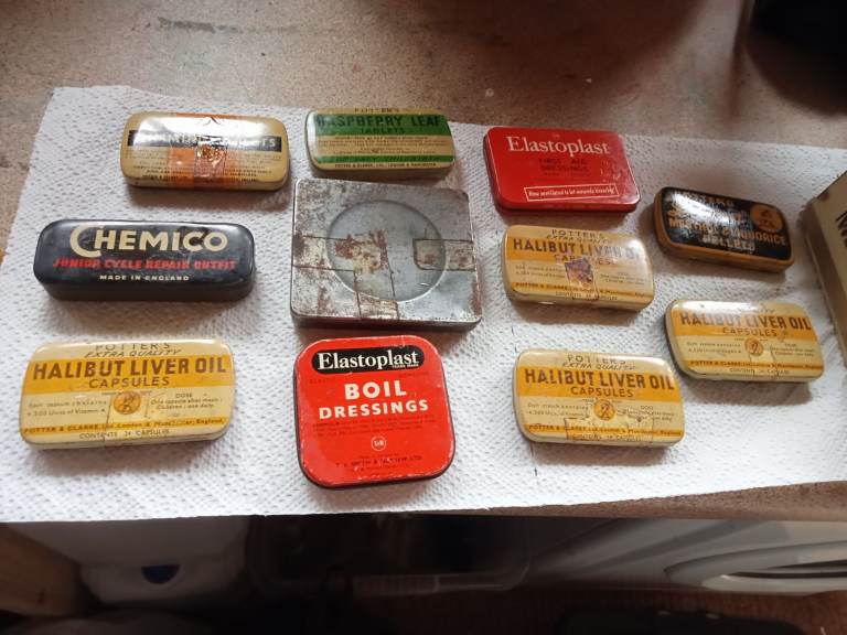 Vintage tins and cigar box