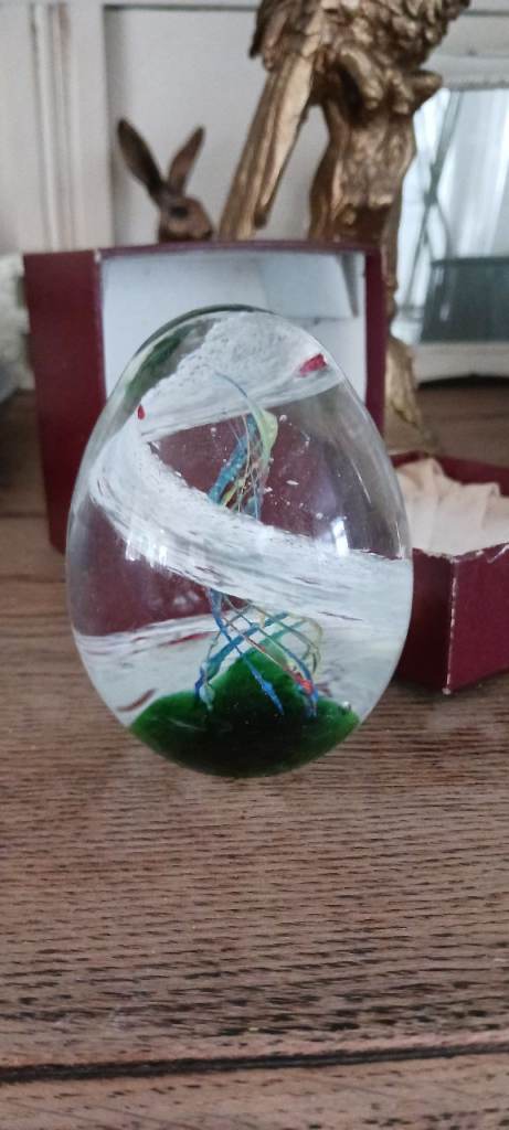Heavy vintage Typhoon egg shaped paperweight in excellent condition with original box.