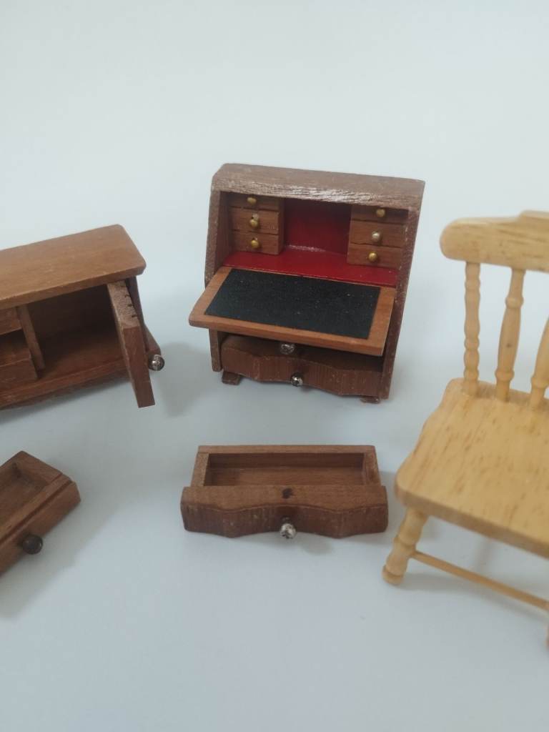 Vintage wooden dolls house furniture sideboard and bureau