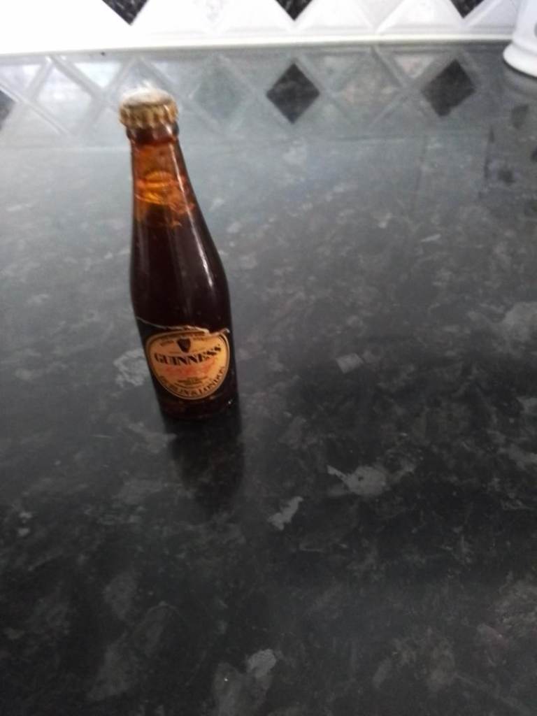Glass Vintage Guinness Miniature Bottle “Extra Stout” Guinness. Number on base 8-268. Minimum contents 10 Fluid oz. Dublin & London label. 3.25 high, base ¾” 52 years old 1973. Guinness cap lid with harp emblem design. £30.00