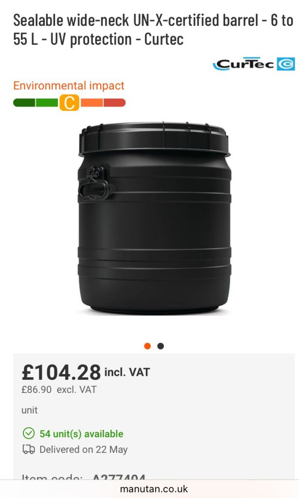 Food safe,air tight thick barrels. They are all brand new, twin handle with a 50litre capacity. Ideal for animal food, outside storage, growing potatoes etc etc they retail at £102 each however now surplus to needs. £40 each.