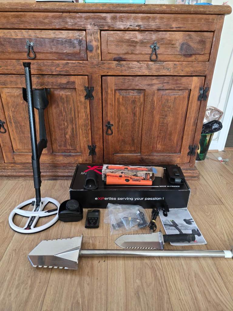 Very good condition few scratches on middle stem still has 3 years warranty remaining comes with wsa wireless headphones 9inch hf coil and charging leads boxed also virtually brand new garret AT pinpointer plus quality stainless steel spade and trowel so full kit willing to swap for another quality machine let me know what you have cash or swap on collection