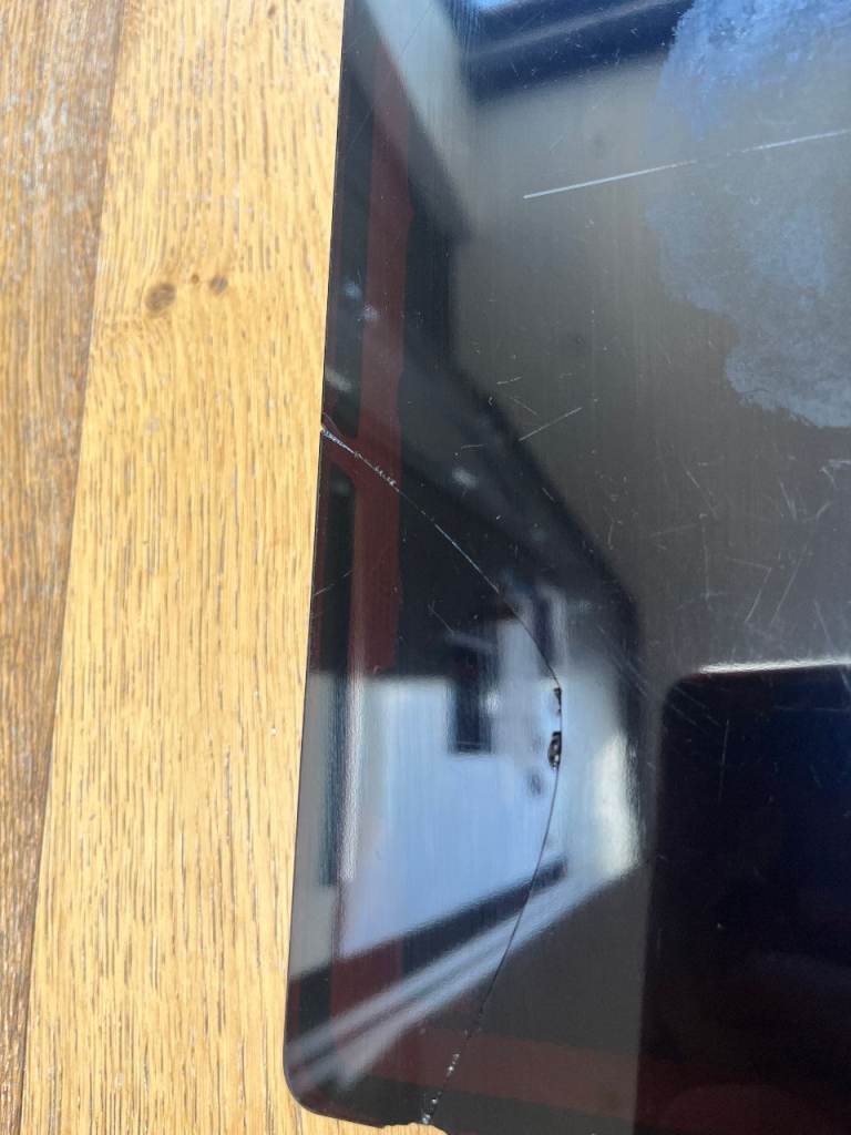 Corner chipped + crack in glass