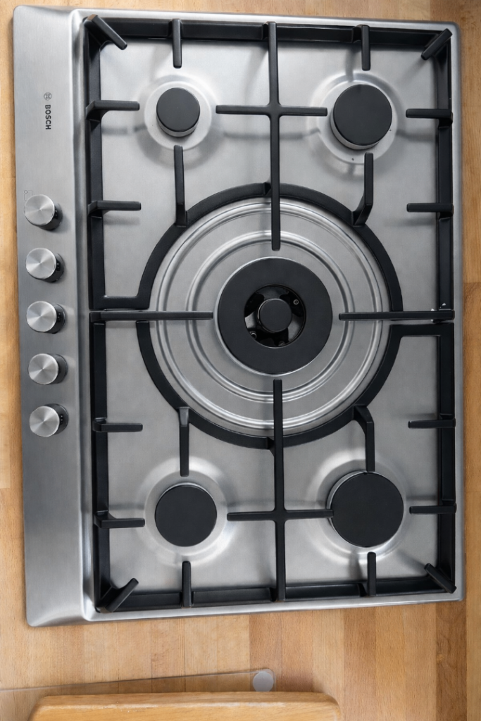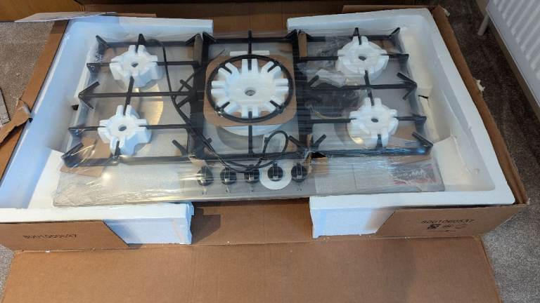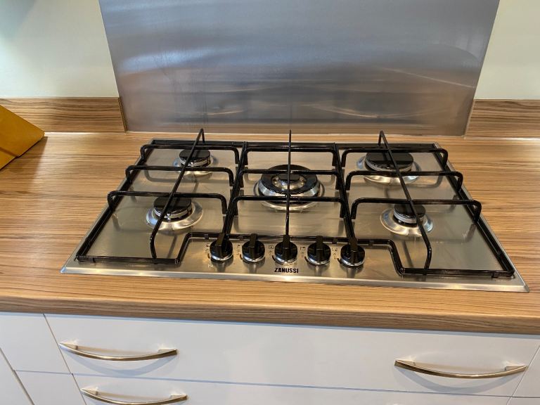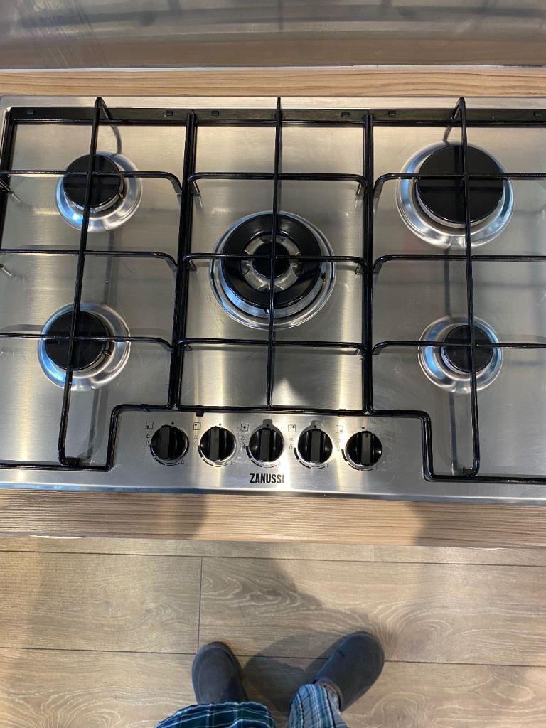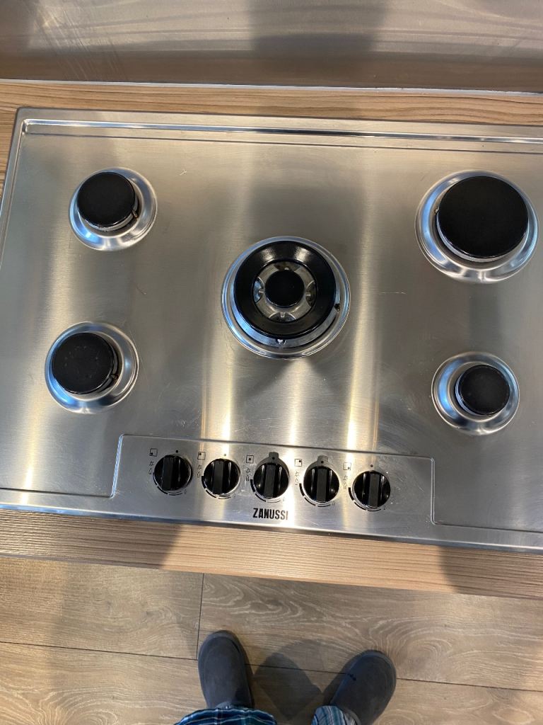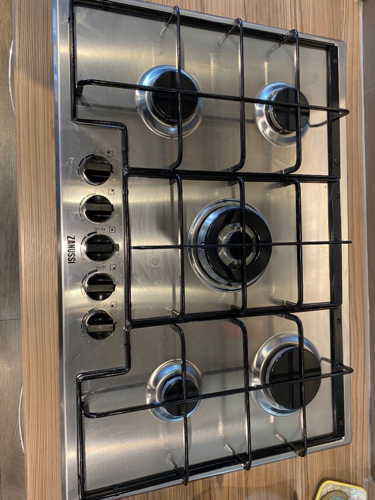 Zanussi 5 burner gas hob, size 50 x 74 cm comes with plug for ignition
